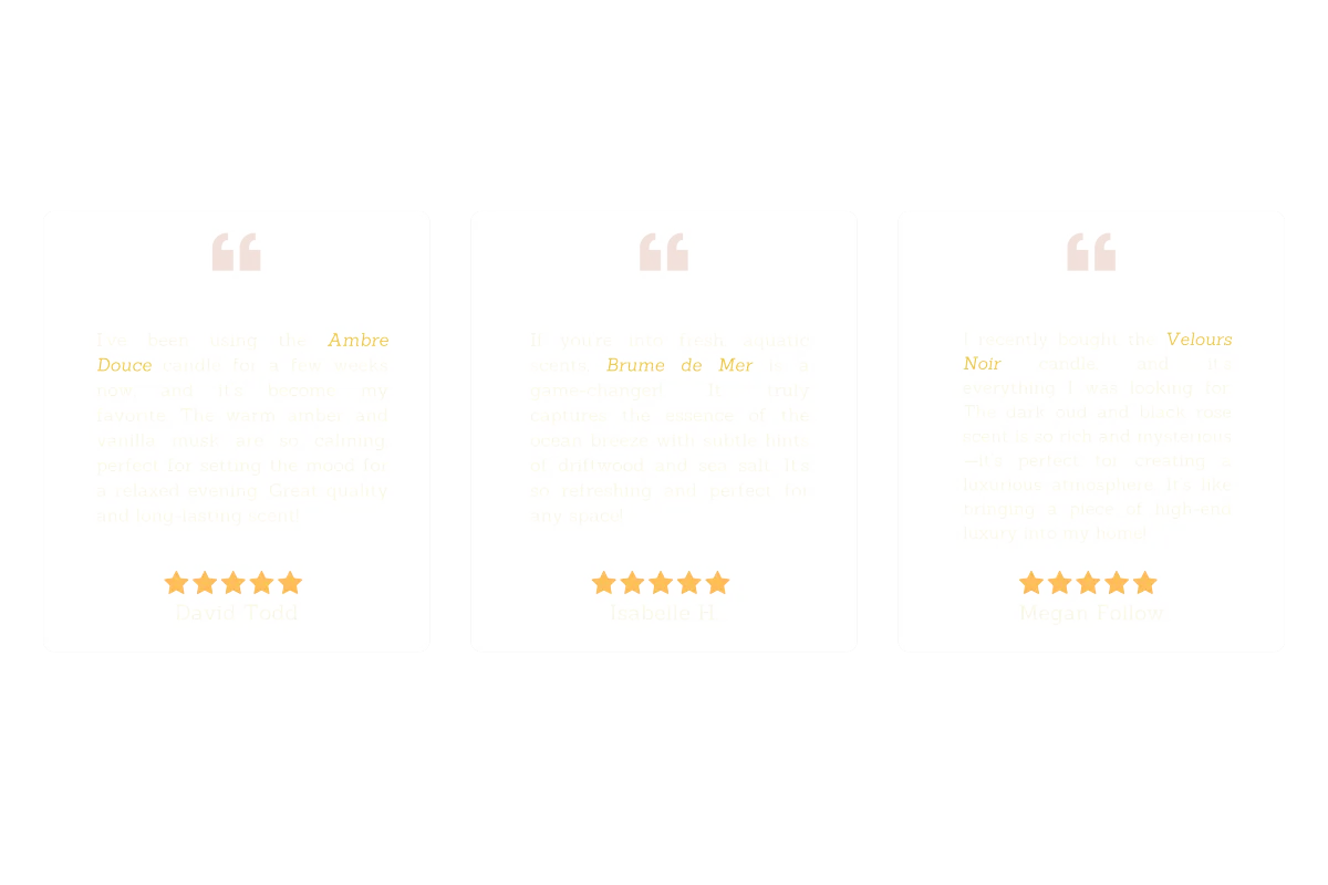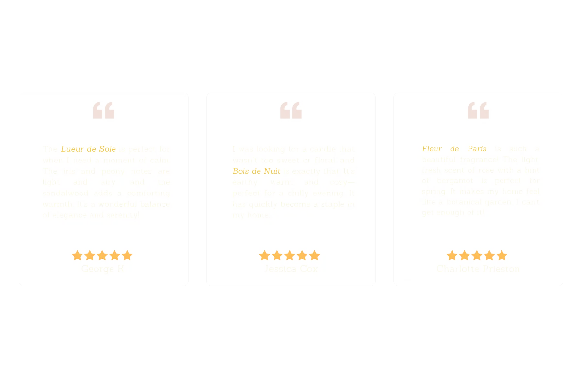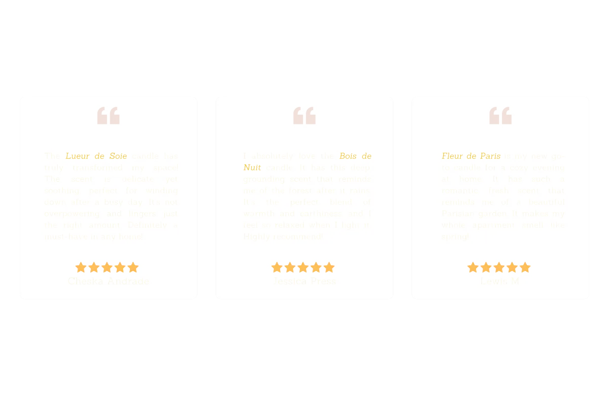 Unlike mass-produced candles, ours are designed as emotional experiences. We use complex fragrance layering inspired by Parisian sensory rituals.